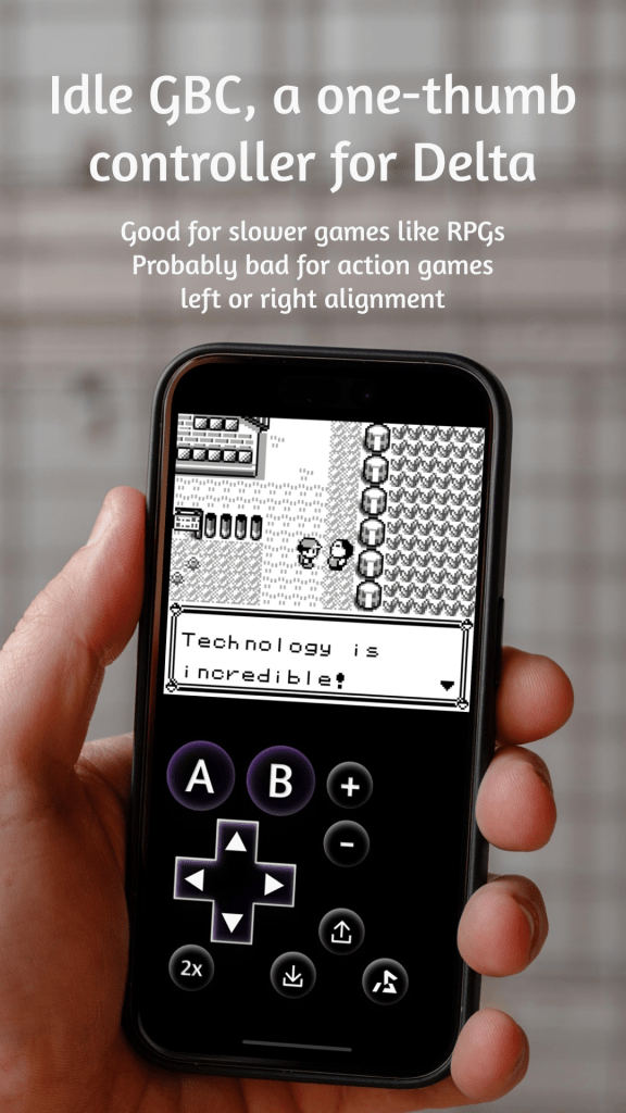 Idle GBC is a custom Delta controller that works really well with slow Game Boy RPGs like Pokémon and the Final Fantasy Legend trilogy.