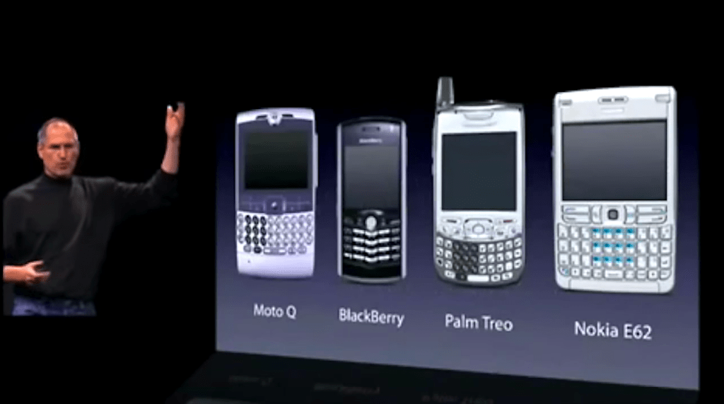Remember that original iPhone keynote, when Steve Jobs put all the other smartphones up on the Titantron, where he sliced off all the hardware buttons? That got me thinking.