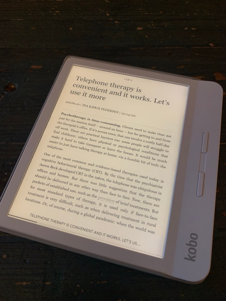 It’s the first Kobo I’ve owned to make it over the 2 year mark (that was often my fault, not Kobo’s). It’s also the first Kobo to feel better out of a case than in it. I like the larger size screen and how easy it is to get library books and PDFs on the thing.