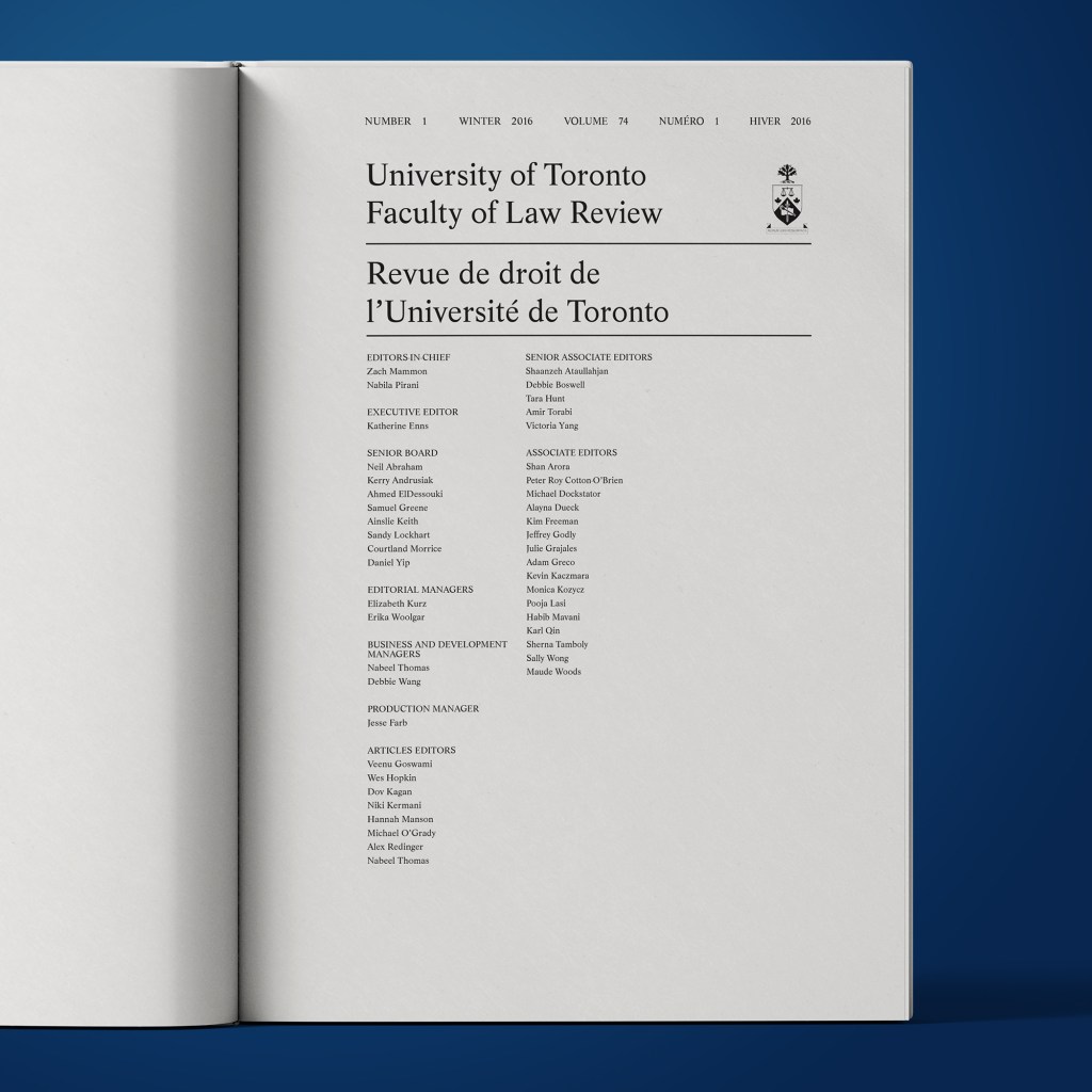 University of Toronto Faculty of Law Review, Volume 74